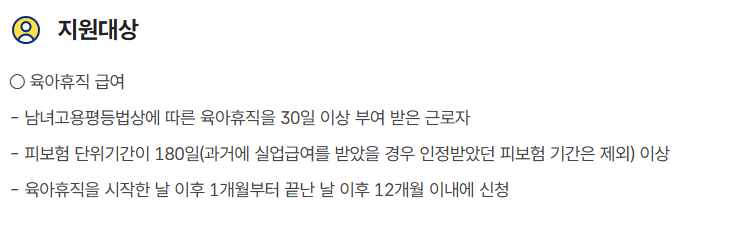 고용보험 가입자일 것 (육아휴직 개시일 기준으로 180일 이상 근로 필요)