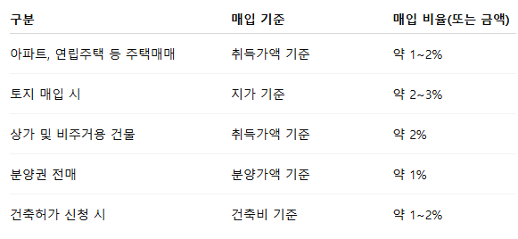 즉, 부동산 거래 행위가 발생할 때마다 법으로 정해진 기준에 따라 일정 비율의 채권을 매입해야 하는 것이죠.