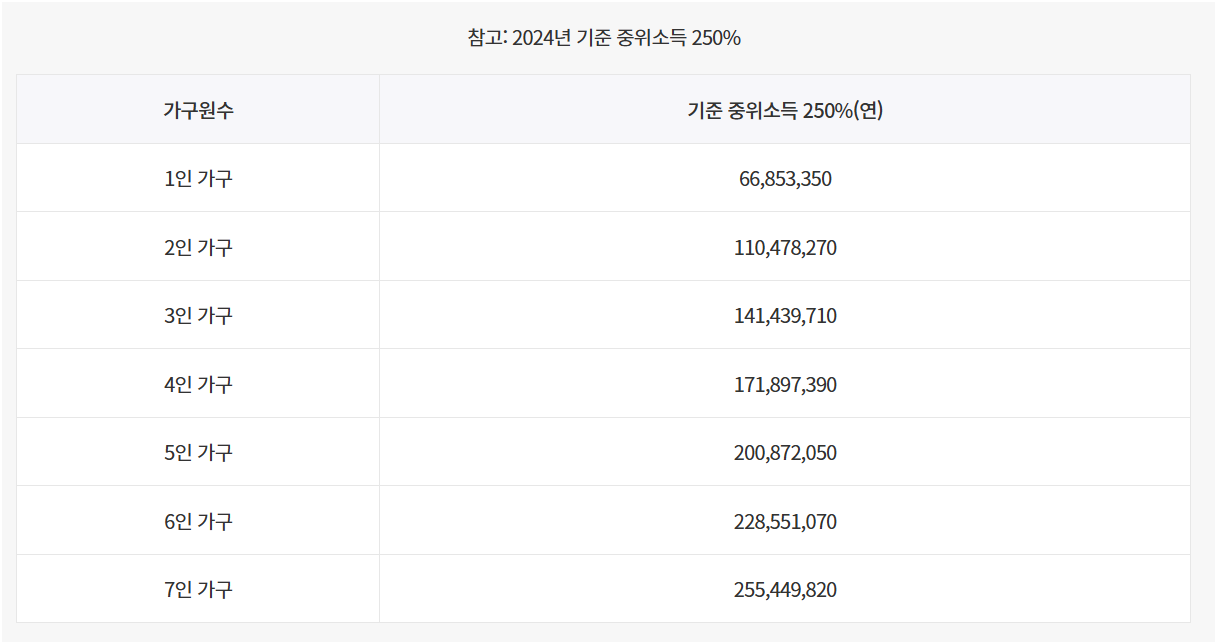 가구 소득은 기준 중위소득의 180% 이하여야 합니다.
